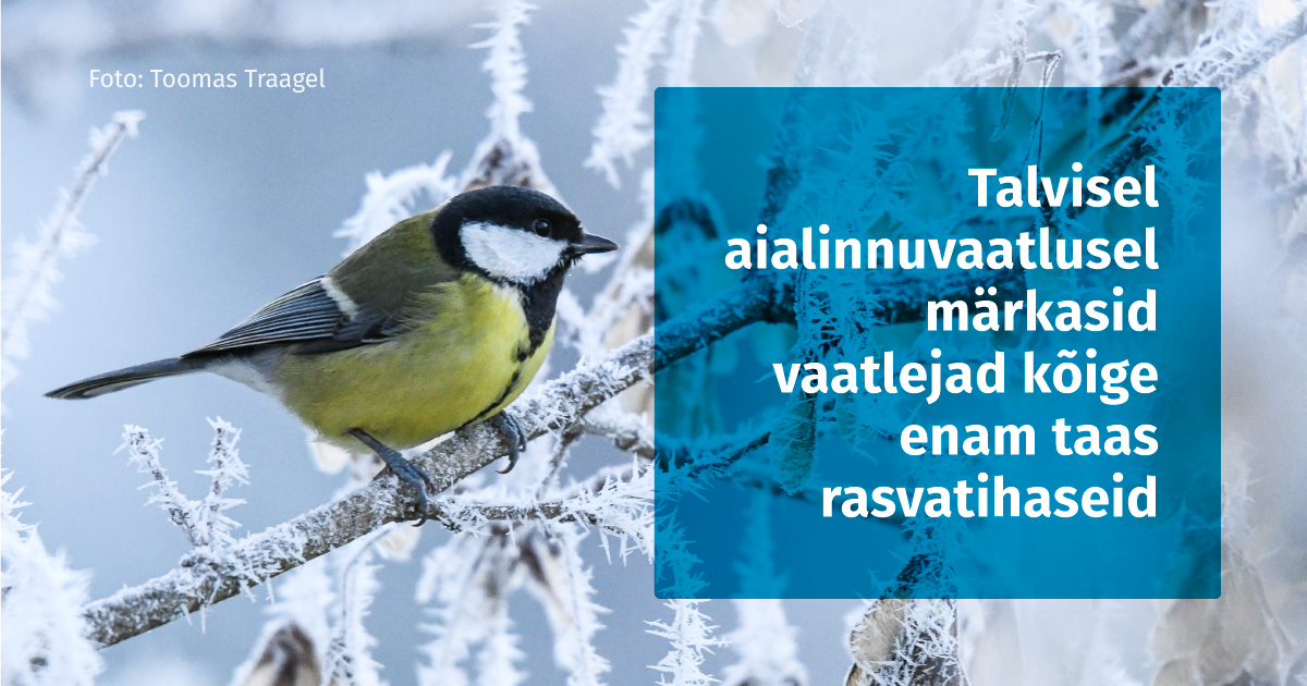 Eesti Ornitoloogiaühing kutsub reedest kuni pühapäevani vaatlema talviseid aialinde oma koduõues. Talvine aialinnuvaatlus on lihtne ja igas vanuses huvilistele sobiv tegevus - tuleb vaid valida endale sobiv aeg ja koht.