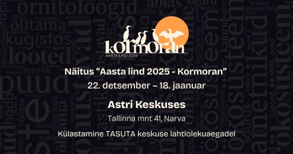 2025 aasta lindu – kormorani – tutvustav rändnäitus on jõudnud oma pikal ringreisil järgmisse peatuspaika: Astri Keskusesse (Tallinna mnt 41, Narva). Näitust, mis tutvustab kormorani rolli looduses, on võimalik tasuta külastada 18. jaanuarini keskuse lahtioleku aegadel.