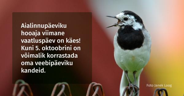 Kolmapäeval, 1. oktoobril on suvise aialinnupäeviku viimane päev sellel hooajal. Pärast vaatlusperioodi lõppu on aega 5. oktoobrini üle vaadata oma veebipäeviku kanded ning vajadusel teha muudatused ja täiendused.