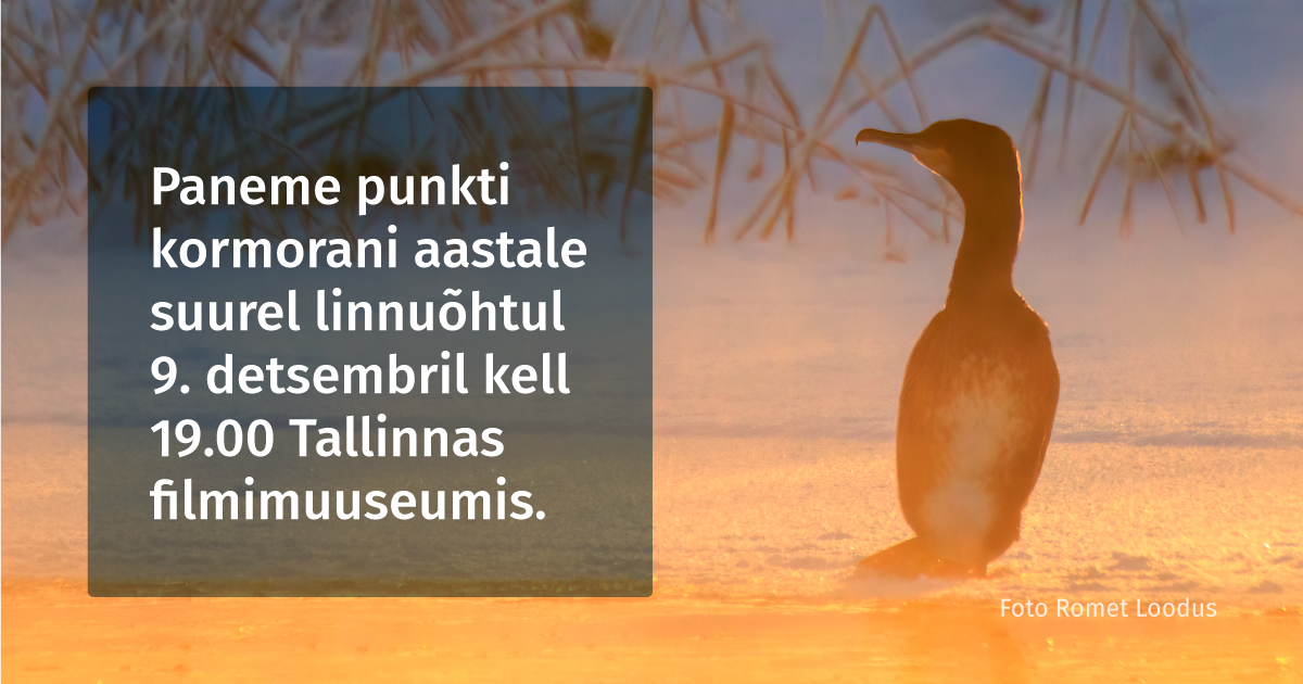 Eesti ornitoloogiaühing paneb punkti kormorani aastale suure linnuõhtuga 9. detsembril kell 19.00 Tallinnas filmimuuseumis. Suurel linnuõhtul tutvustatakse lõppeva aasta lindu, arutletakse kormorani rolli üle ning kõlab ka muusika.
