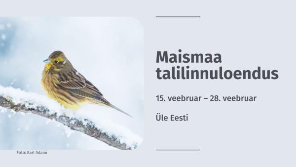 Eesti Ornitoloogiaühing tuletab vabatahtlikele linnuvaatlejatele meelde, et maismaa talilinnuloenduse viimane periood kestab 15.–28. veebruarini.