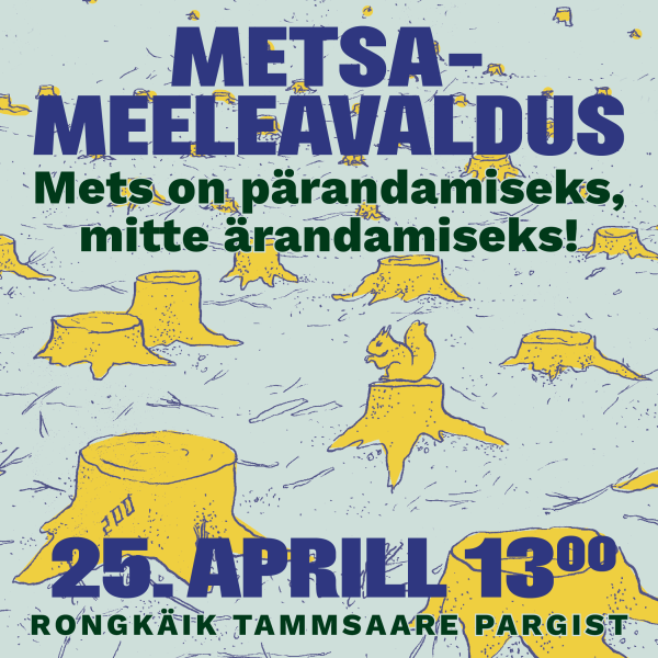 Eesti Ornitoloogiaühing kutsub looduse- ja linnusõpru homme, 25. aprillil Tallinnas toimuvale suurele metsameeleavaldusele „METS ON PÄRANDAMISEKS, MITTE ÄRANDAMISEKS!“