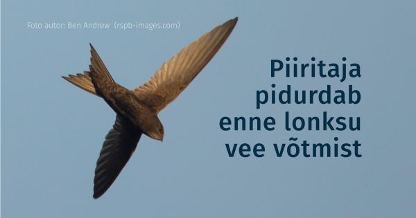 Allikas: Ruaux G, Monmasson K, Hedrick TL, Lumineau S, Margerie E (2023). Drink safely: common swifts (Apus apus) dissipate mechanical energy to decrease flight speed before touch-and-go drinking. Journal of Experimental Biology 226: jeb244961, https://doi.org/10.1242/jeb.244961