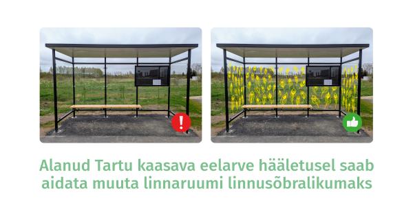 Täna alanud Tartu linna kaasava eelarve hääletusega on võimalik tagada rahastus projektile, mis rikastaks linna väljanägemist ning vähendaks oluliselt lindude asjatut hukkumist. Iga tartlane, kellele läheb korda linnas askeldavate suleliste käekäik ja mitmekesisem linnaruum, saab nüüd anda oma hääle Eesti Ornitoloogiaühingu ideele katta bussiootepaviljonid dekoratiivkile, kleebiste või maalingutega.