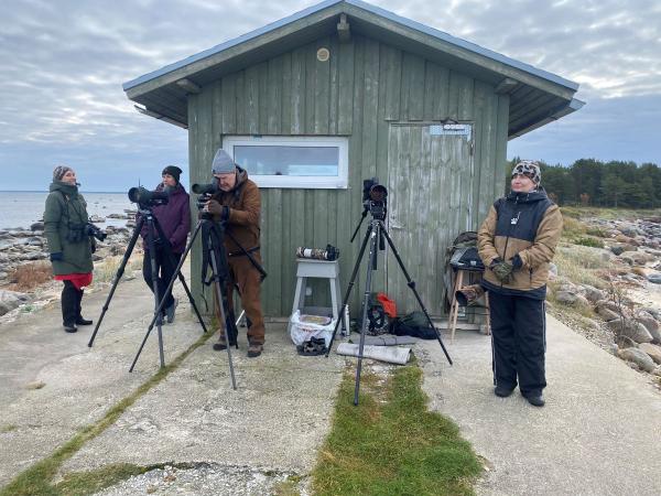 EuroBirdwatchil osalejad vaatlemas linde Põõsaspean neemel 4. oktoobril 2025.Foto: Annika Forsten