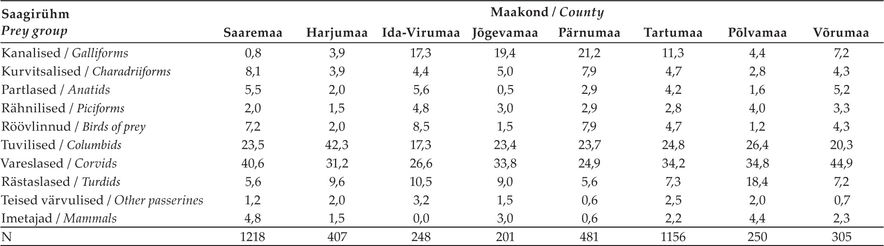 Table 3. Proportions (% by numbers) of prey groups in best studied counties (n > 200).